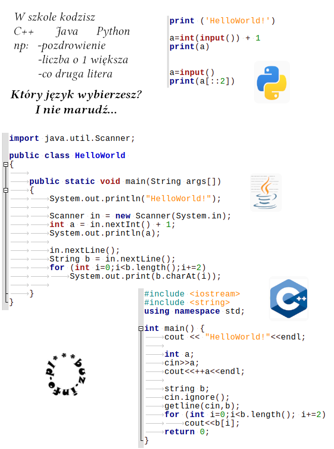 Zadania z powyższych kursów znajdziesz na portalu "Szkopuł", po utworzeniu na nim konta, a następnie po rejestracji w naszym zbiorze zadań: python.002