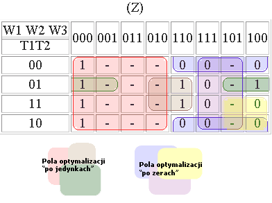 | Przykład 2 - trudniejszy z dokładnym opisem| Minimalizacja funkcji przełączających | Realizacja układów kombinacyjnych z bramek