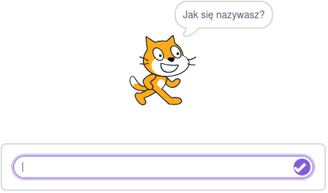 1a. Kot ma powiedzieć Twoje imię.1b. Kot zadaje pytanie "Jak się nazywasz?". W odpowiedzi kot ma powiedzieć wprowadzone imię.