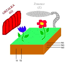 W pewnym ogródku botanicznym zainstalowano grzałkę, zraszacz, 2 czujniki