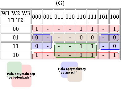 2. Rysujemy tablicę minimalizacji (tablica Karnaugha): czyli:Dla śluzy pierwszej: