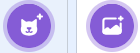 Nowe tła i postacie możemy dodawać po naciśnięciu takich przycisków w prawym dolnym rogu.
