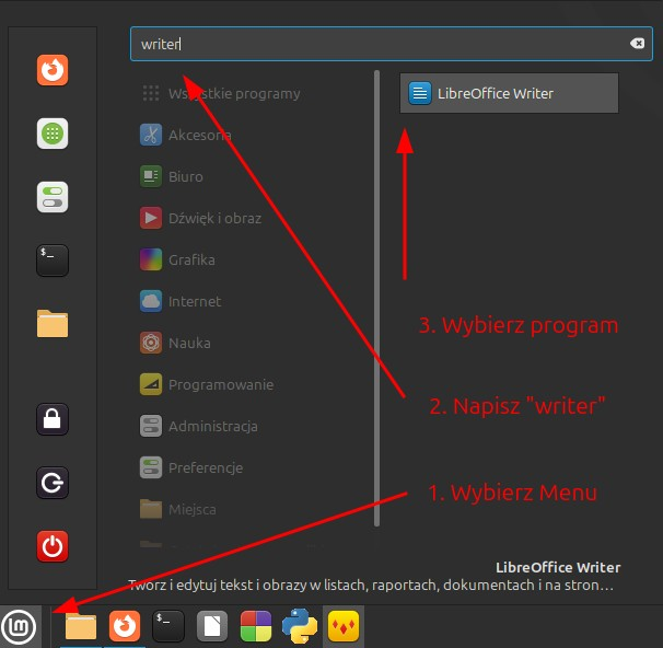 Zadanie 1 – Uruchom edytor tekstu LibreOffice Writer.